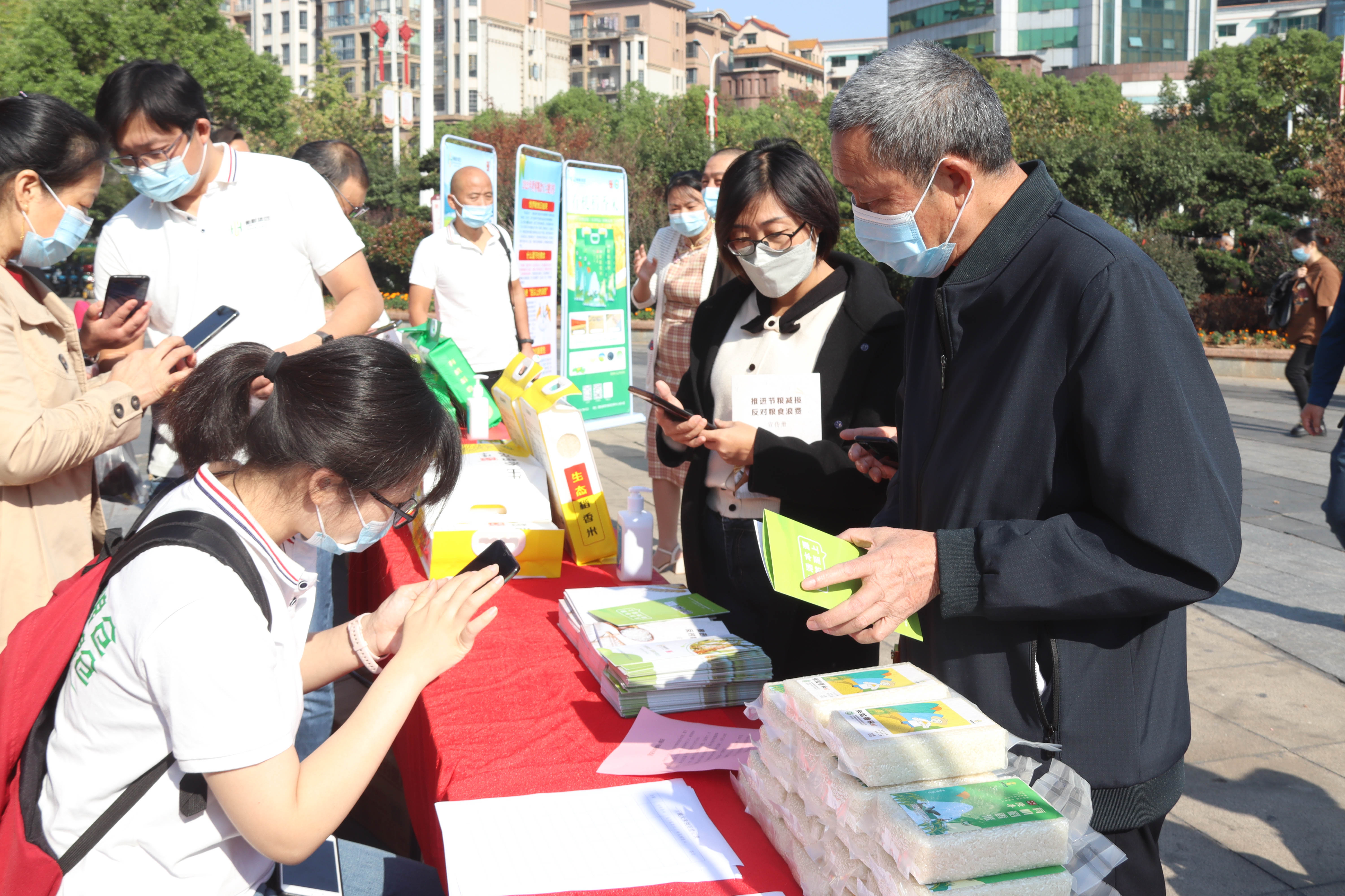 今年10月16日是第42個世界糧食日,主題是“不讓任何人掉隊。更好生產(chǎn)、更好營養(yǎng)、更好環(huán)境、更好生活”?;顒蝇F(xiàn)場布置了咨詢點和宣傳展板,志愿者們向群眾發(fā)放宣傳手冊,普及糧食安全法律法規(guī),介紹放心糧油相關(guān)知識,講解鑒別優(yōu)質(zhì)糧油方法,推行“厲行節(jié)約、反對浪費”的良好社會風(fēng)尚。